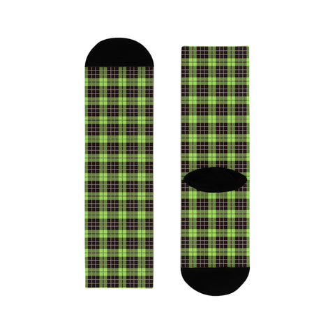 Slide into cozy confidence with these crew-length sublimation socks. The bold green-and-black plaid wraps your calves in retro energy — think campfire evenings, skate sessions, and coffee-shop hangs. Lightweight yet warm, they balance a soft cotton inner with a polyester exterior that keeps the pattern vibrant wash after wash. They hug the foot without constricting, with a low-profile rib that stays put while you move. Wear them with boots, sneakers, or rolled-up jeans to add a playful, slightly punk note to everyday outfits or to finish a casual look for seasonal gatherings.