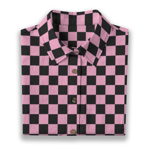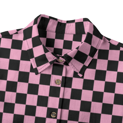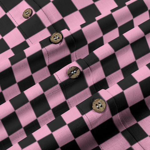 Crafted from 100% slub cotton, this pink and black checkered print shirt combines breathable comfort with a subtle alternative, nature-inspired edge. The fabric’s linen-like texture and naturally porous structure feel 3–5°C cooler than standard cotton, helping you stay fresh and comfortable even in temperatures up to 37°C. Naturally antibacterial, it resists odor during extended wear, making it ideal for warm days, creative outings, or everyday styling.