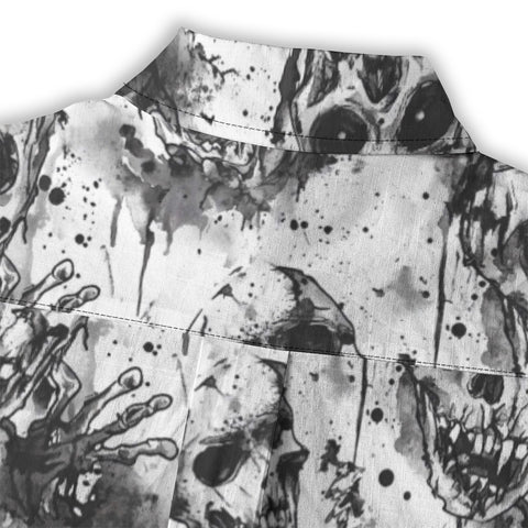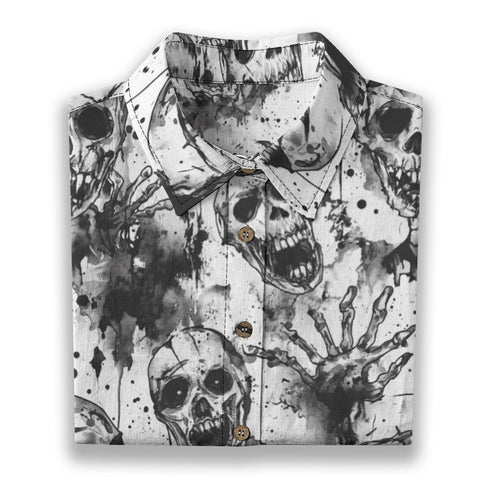 Finished with hand-polished coconut buttons, each featuring a unique natural grain, this shirt reflects a considered balance of style and environmental awareness—from fabric choice to final detail. The black and white skull print delivers a striking, timeless statement, blending dark attitude with effortless wearability.